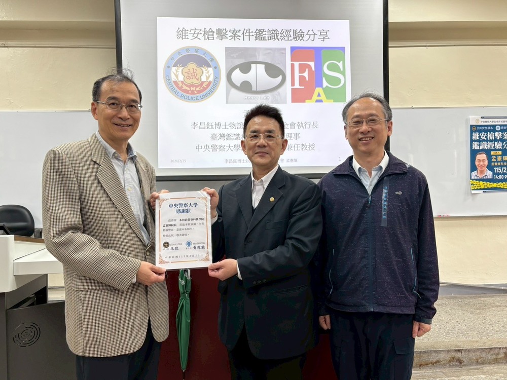 本系114學年度第2學期始業活動與保安警察學系共同邀請李昌鈺博士物證科學教育基金會執行長孟憲輝博士,於115年2月25日(星期三)下午2時至4時,在教學大樓2B教室舉行專題演講,主題為:「維安槍擊案件鑑識經驗分享」。